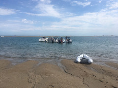 Les bateaux se mettent à couple pour former un grand radeau et admirer ce beau paysage le temps d’une marée.
